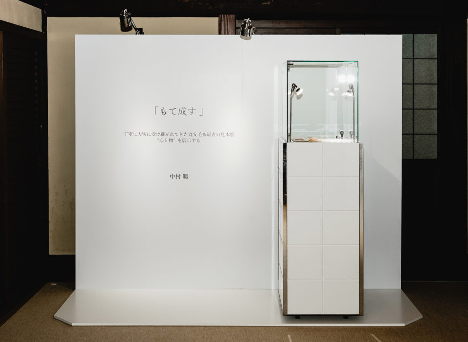 今回のエキシビジョンのテーマである「もてなす」のリサーチを始めた瞬間の、見聞書の1行目が、「持て成す、とは「モノを持って成し遂げる」という語源に由来し、「心と物」を用いて相手に喜んでもらうよう対応すること」であった。