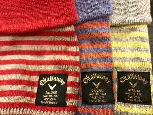 その記念品に、感謝の気持ちを込めて、ゴルフ仲間にお配りしたオリジナルネックウォーマーに付けたネームが、このokallawayなんです!